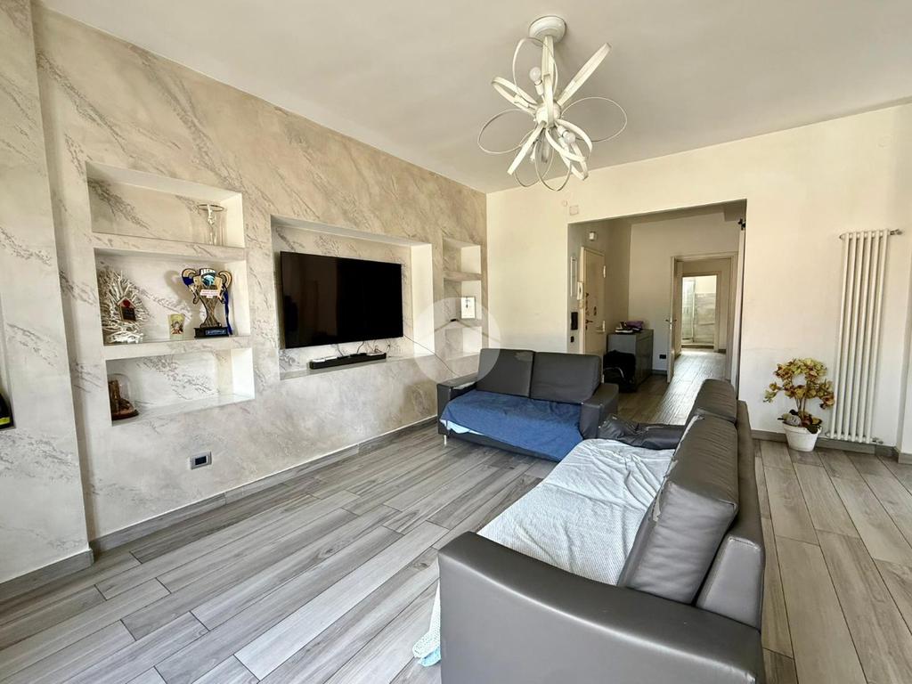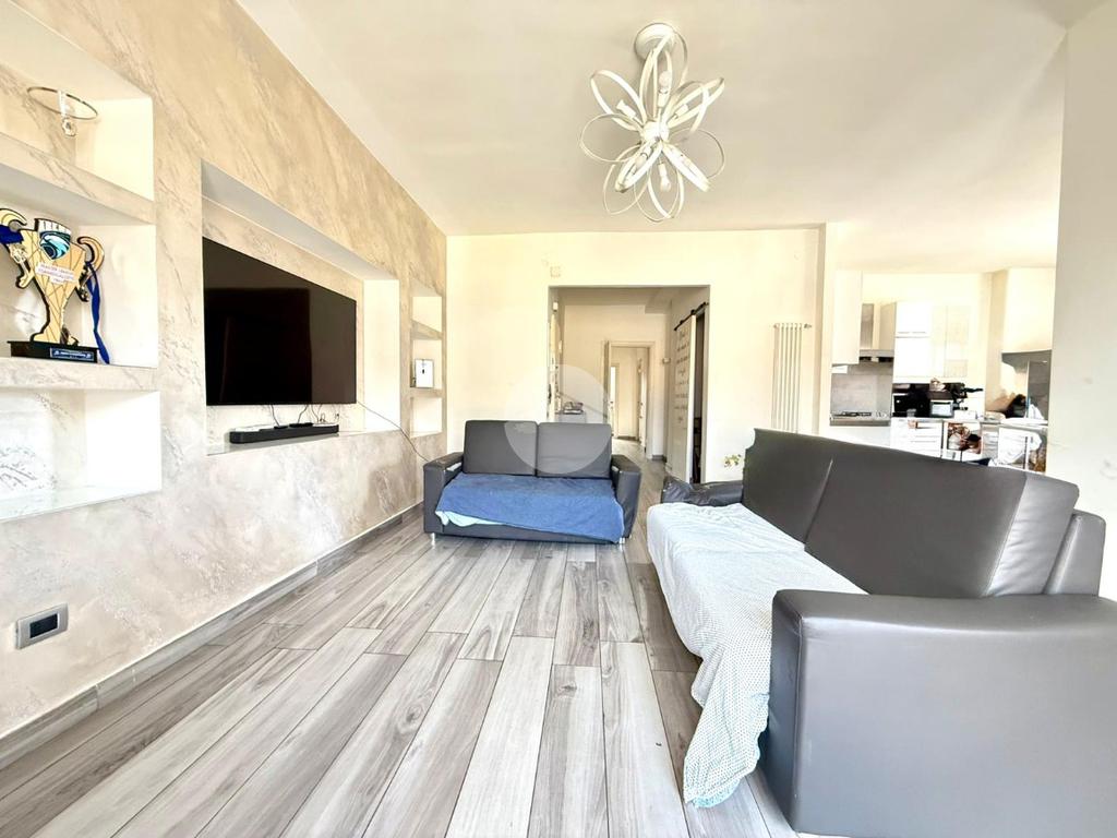 L'immobile si presenta in ottimo stato abitativo, dotato di riscaldamento autonomo, è composto da: ingresso in soggiorno con cucina a vista, due camere da letto matrimoniali, cameretta e doppi accessori.